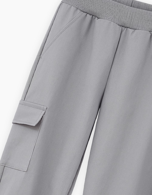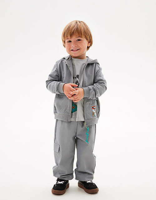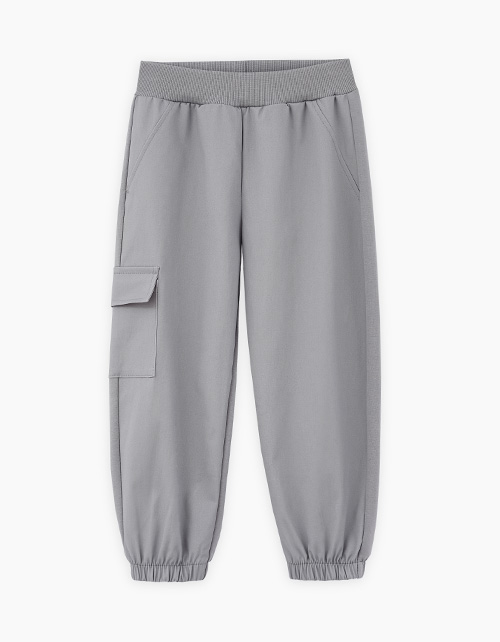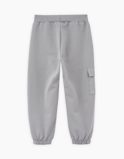 Утилитарные брюки интересного серо-зелёного оттенка для мальчика. Модель прямого силуэта, со средней посадкой. Мягкий эластичный пояс и манжеты. Комбинация материалов: твил и футер. Брюки дополнены накладным карманом с клапаном. Ткань изделия: твил; футер двухниточный