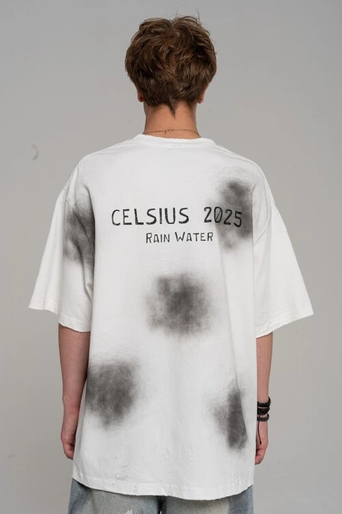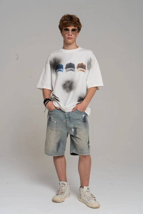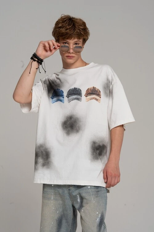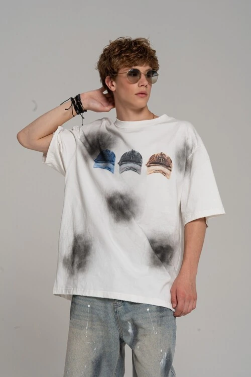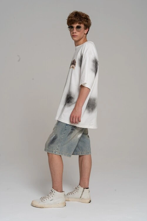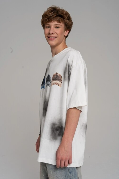 Стильная хлопковая футболка для подростка. Модный силует oversize. Трендовые потертости.
