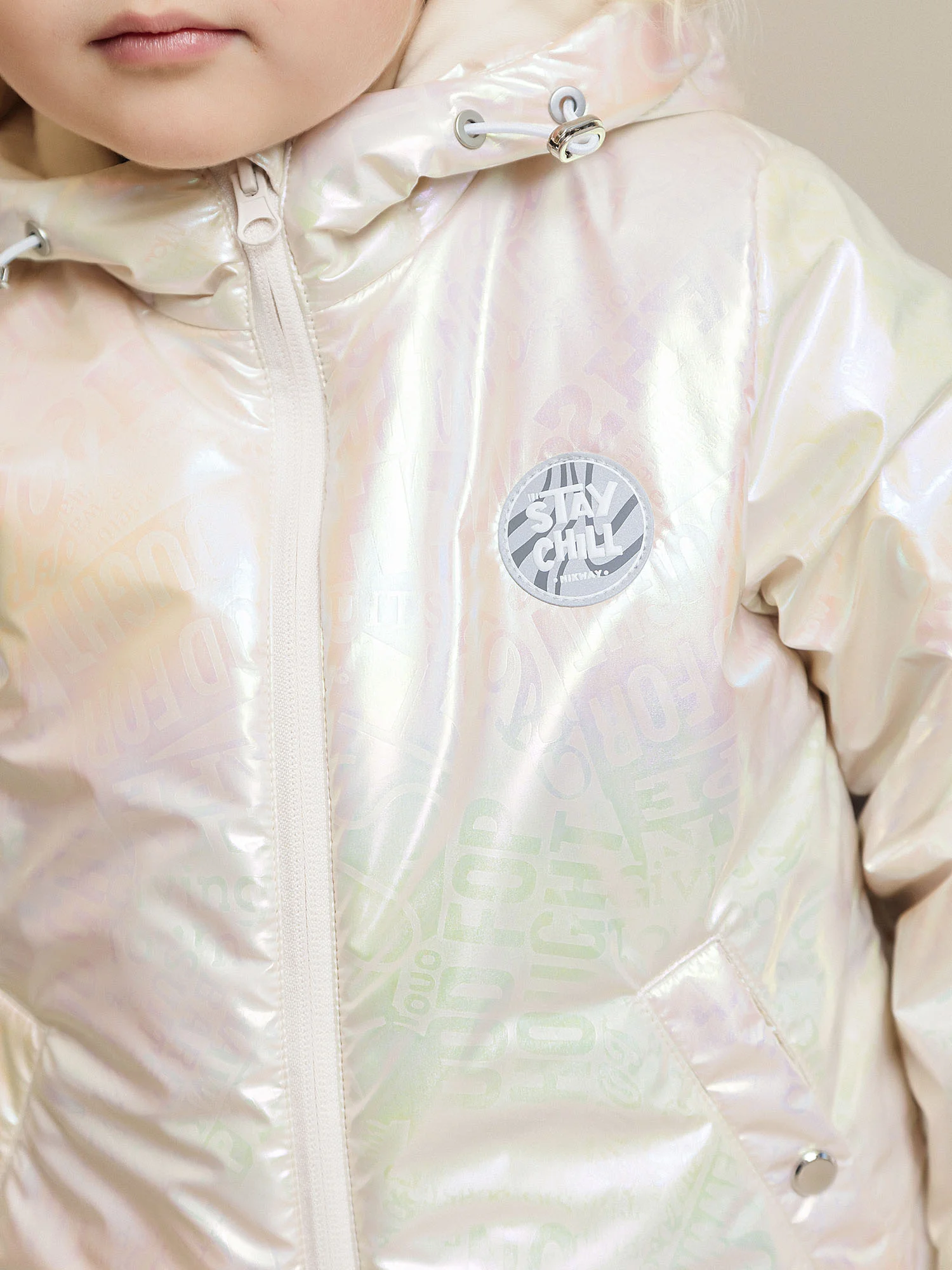 Ткань верха изделия очень мягкая и обладает благородным блеском благодаря своей фактуре. Комплект выполнен из плотной, но достаточно мягкой ткани с мембранным покрытием, что обеспечивает отличную защиту от ветра и влаги. Подкладка из хлопчатобумажной ткани создает комфорт и приятные ощущения при носке. Удлиненная спинка и широкие штанины гарантируют свободу движений и удобство на прогулках. Изделие оснащено центральной застежкой-молнией с внутренней ветрозащитной планкой, что предотвращает попадание холода. Защита от защипа обеспечивает дополнительный комфорт. Вход в карманы фиксируется на кнопки. Низ рукавов стянут манжетами с эластичной тесьмой, что помогает сохранять тепло. Цельнокроеный капюшон со стойкой и регулируемая лицевая часть обеспечивают надежную защиту от ветра и холода. Полукомбинезон с завышенной талией защищает от поддува, а все открытые срезы дополнительно защищены за счет утяжек. В комплекте водонепроницаемый стробоскоп-брелок. Регулируемые штрипки надежно фиксируются на обуви, предотвращая ее загрязнение и обеспечивая стабильную посадку.