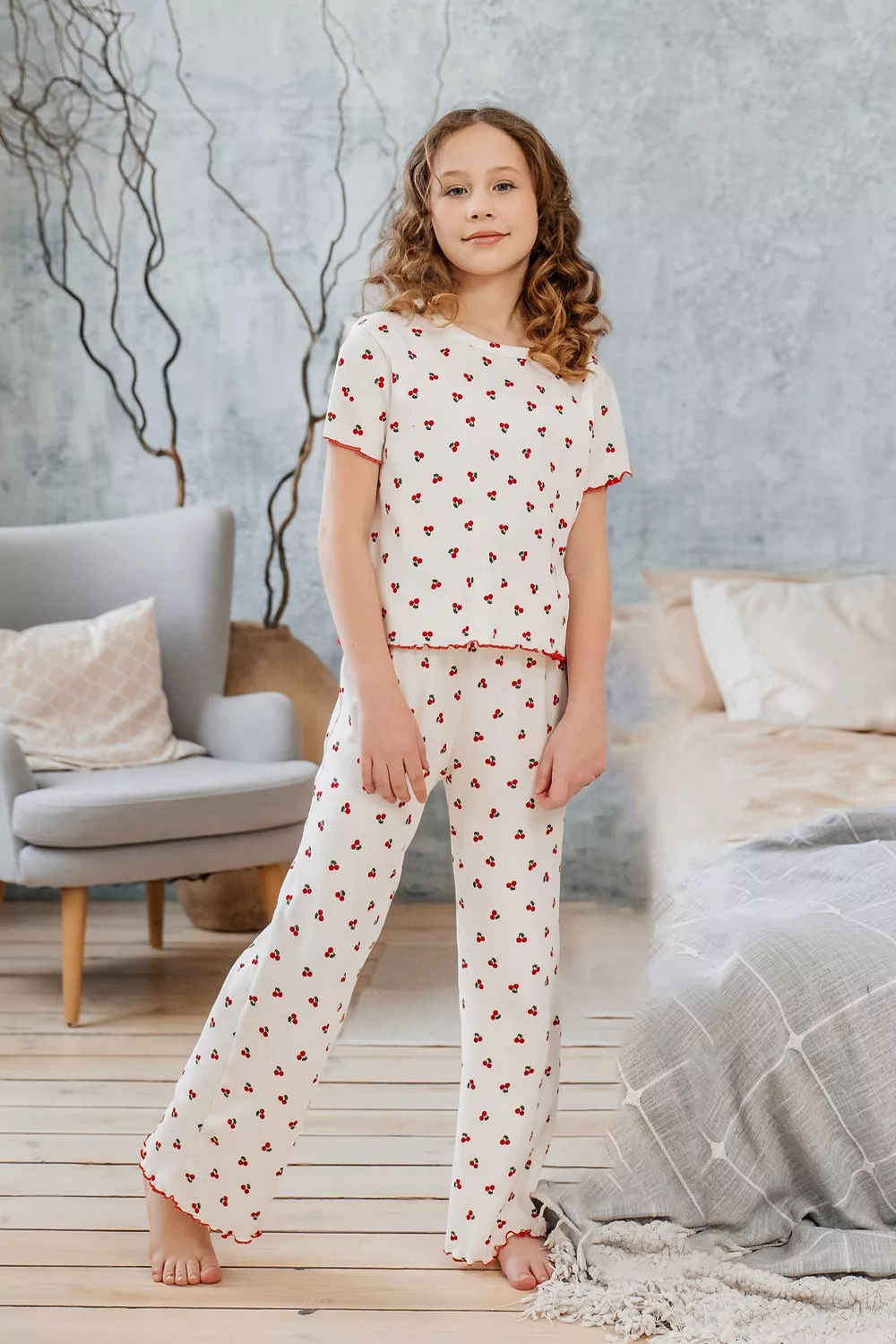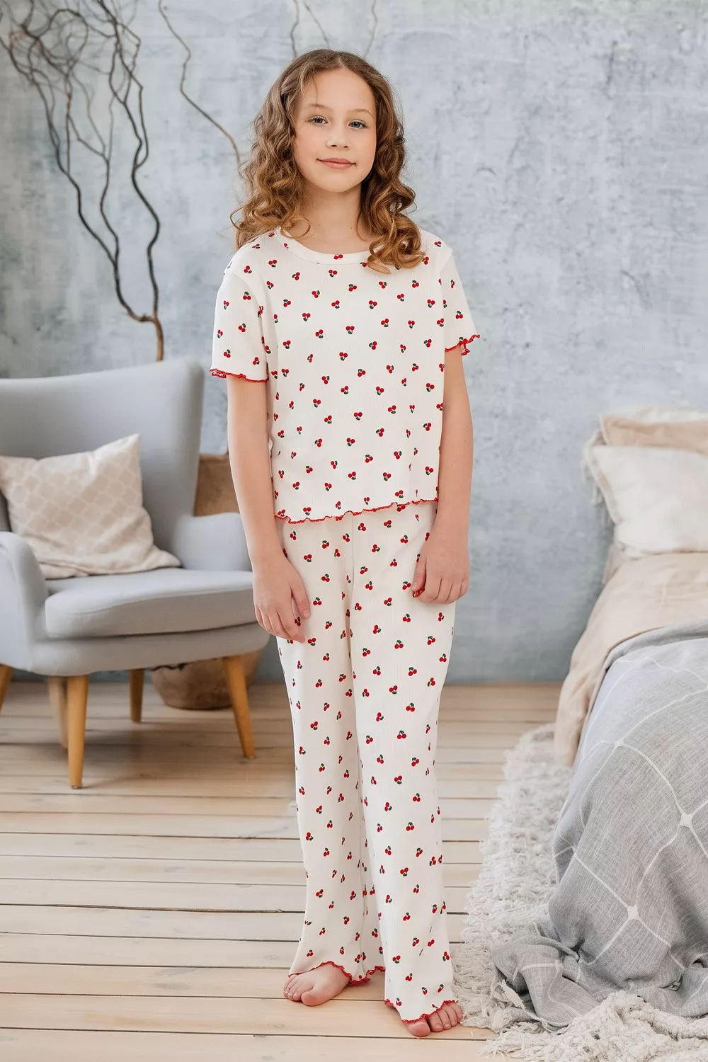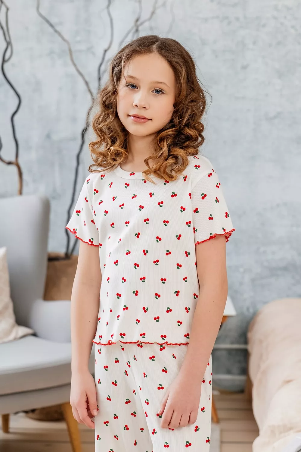 Домашний костюм с футболкой и штанами станет идеальным выбором для дома. Брючный костюм изготовлен из высококачественного плотного материала, что обеспечивает комфорт и приятные ощущения на коже, имеет свободный прямой покрой.