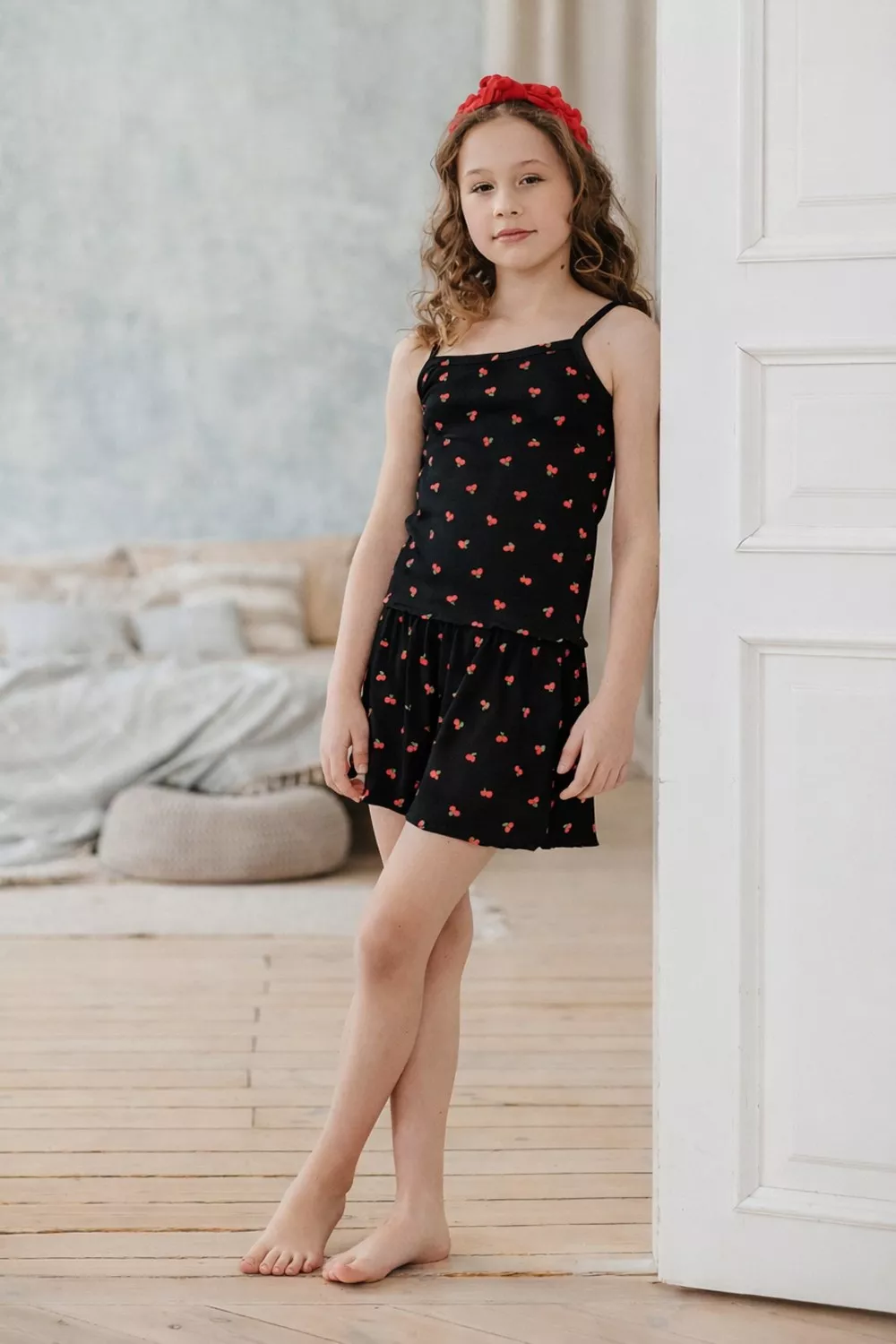 Домашний костюм с майкой и шортами станет идеальным выбором для дома. Костюм изготовлен из высококачественного плотного материала, что обеспечивает комфорт и приятные ощущения на коже, имеет свободный прямой покрой. 95% хлопок, 5% эластан