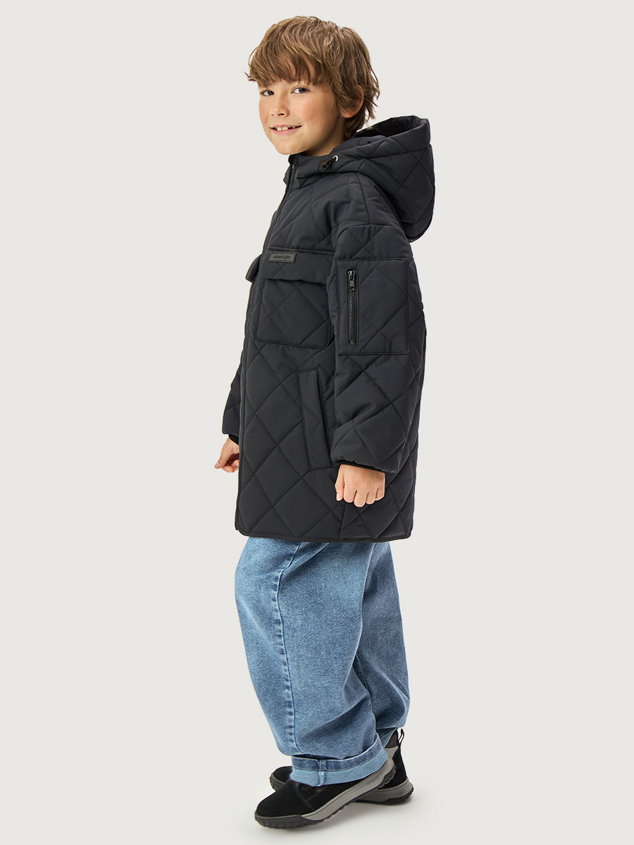 Удлиненная куртка УРБАН из стеганной мембранной ткани 5000/5000. Мембранная ткань - это непродуваемый и водонепроницаемый материал, который надежно защищает от ветра и влаги. Благодаря дышащим свойствам мембраны ребенку будет комфортно в любую погоду, и он не вспотеет. Мембрана в сочетании с утеплителем сохраняет тепло во время прогулок, позволяя телу дышать. Функционал: - центральная застежка на молнии, - накладные карманы с клапаном, - нижние прорезные карманы, - капюшон с кулисой для регулировки объема, - трикотажные манжеты. Мы все продумали до мелочей, поэтому модель допонительно оснащена: - молнией с внутренней ветрозащитной планкой, - клапаном с застежкой на магнитные кнопки, - на рукаве карман на молнии. Комфортная температура эксплуатации от -5°С до +10°С. Рекомендуем приобрести комплектом аксессуары, обувь и другие вещи из капсулы в карточке товара, которые отлично сочетаются с изделиями коллекции.