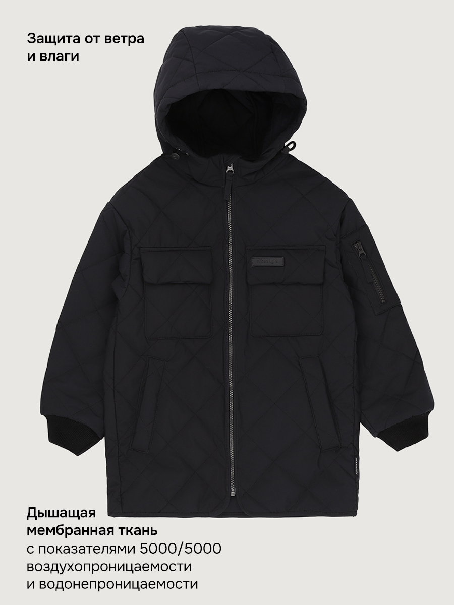 Удлиненная куртка УРБАН из стеганной мембранной ткани 5000/5000. Мембранная ткань - это непродуваемый и водонепроницаемый материал, который надежно защищает от ветра и влаги. Благодаря дышащим свойствам мембраны ребенку будет комфортно в любую погоду, и он не вспотеет. Мембрана в сочетании с утеплителем сохраняет тепло во время прогулок, позволяя телу дышать.