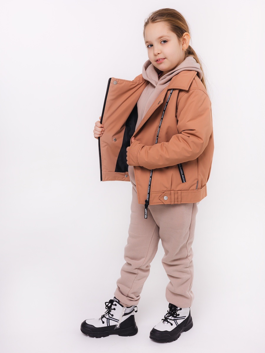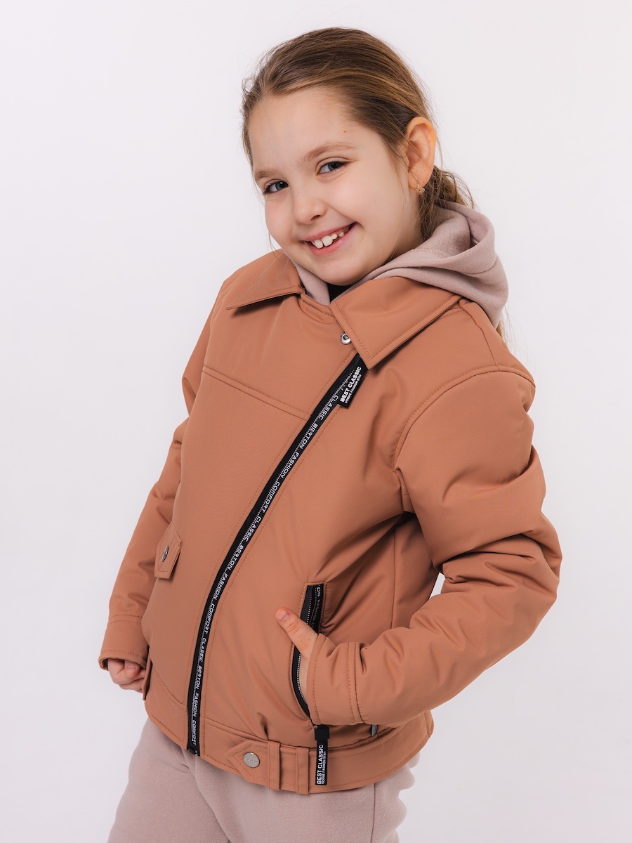 Стильная куртка-косуха в тренде сезона. Кокетки на полочках и спинке. По низу рукавов манжеты. Два кармана на молниях. На правой полочке декоративный клапан на кнопке. Ассиметричная застежка-молния. Отложной воротник. По низу куртки притачной пояс, дополнен патами на кнопках. На правом рукаве и спинке куртки светоотражающие нашивки.