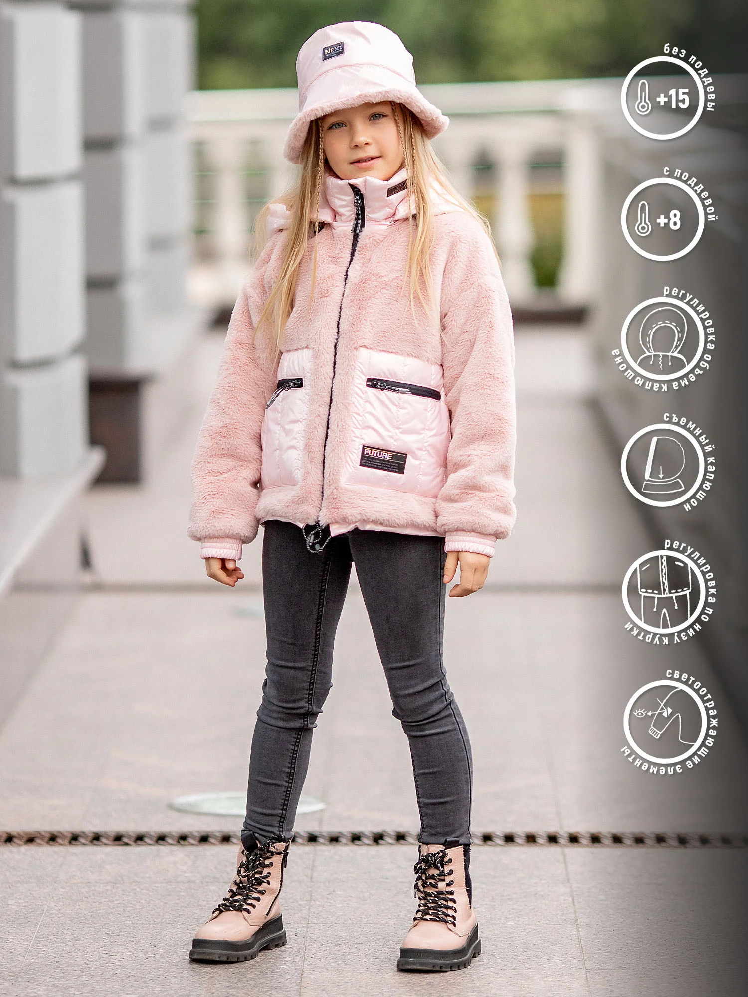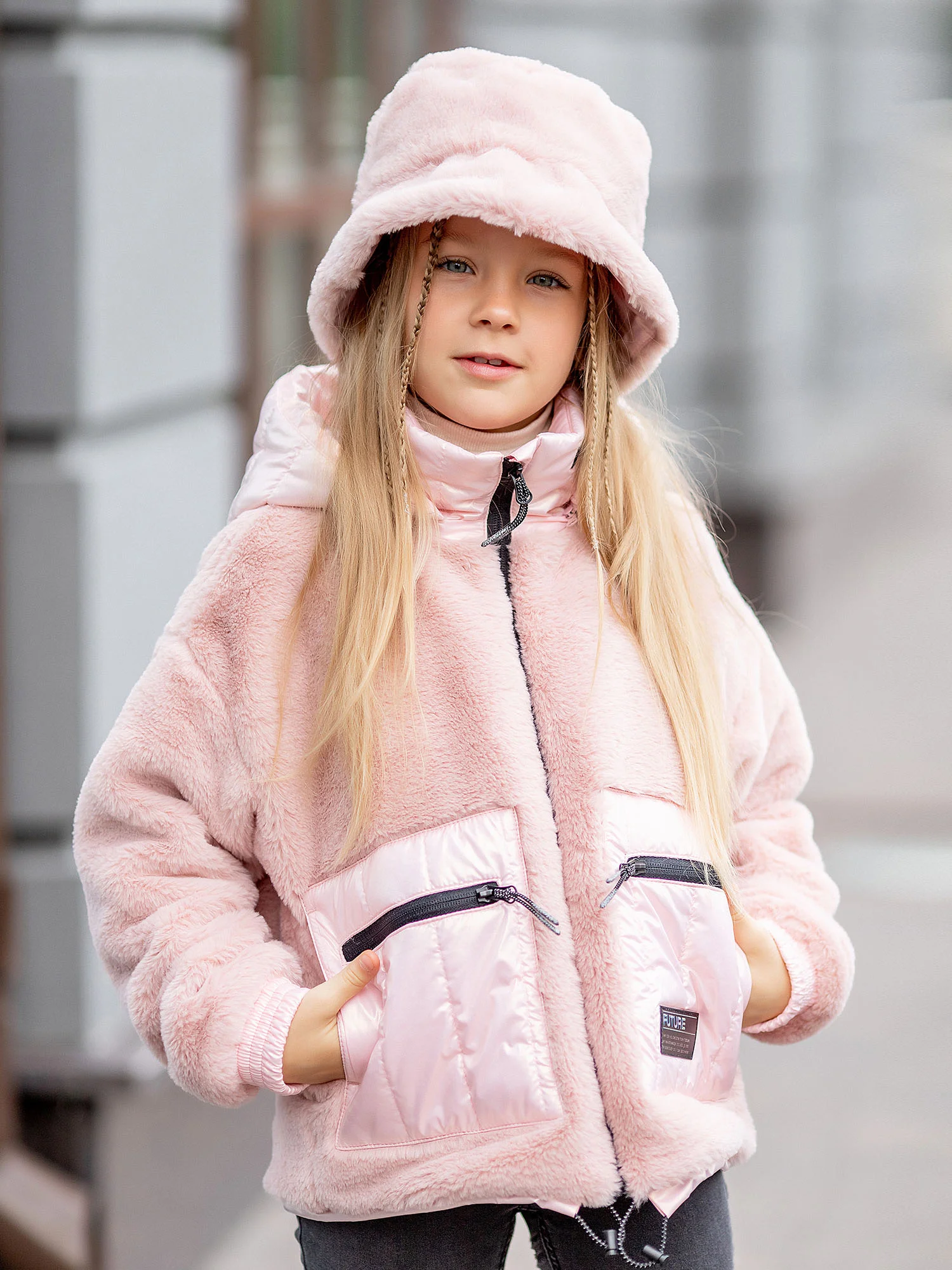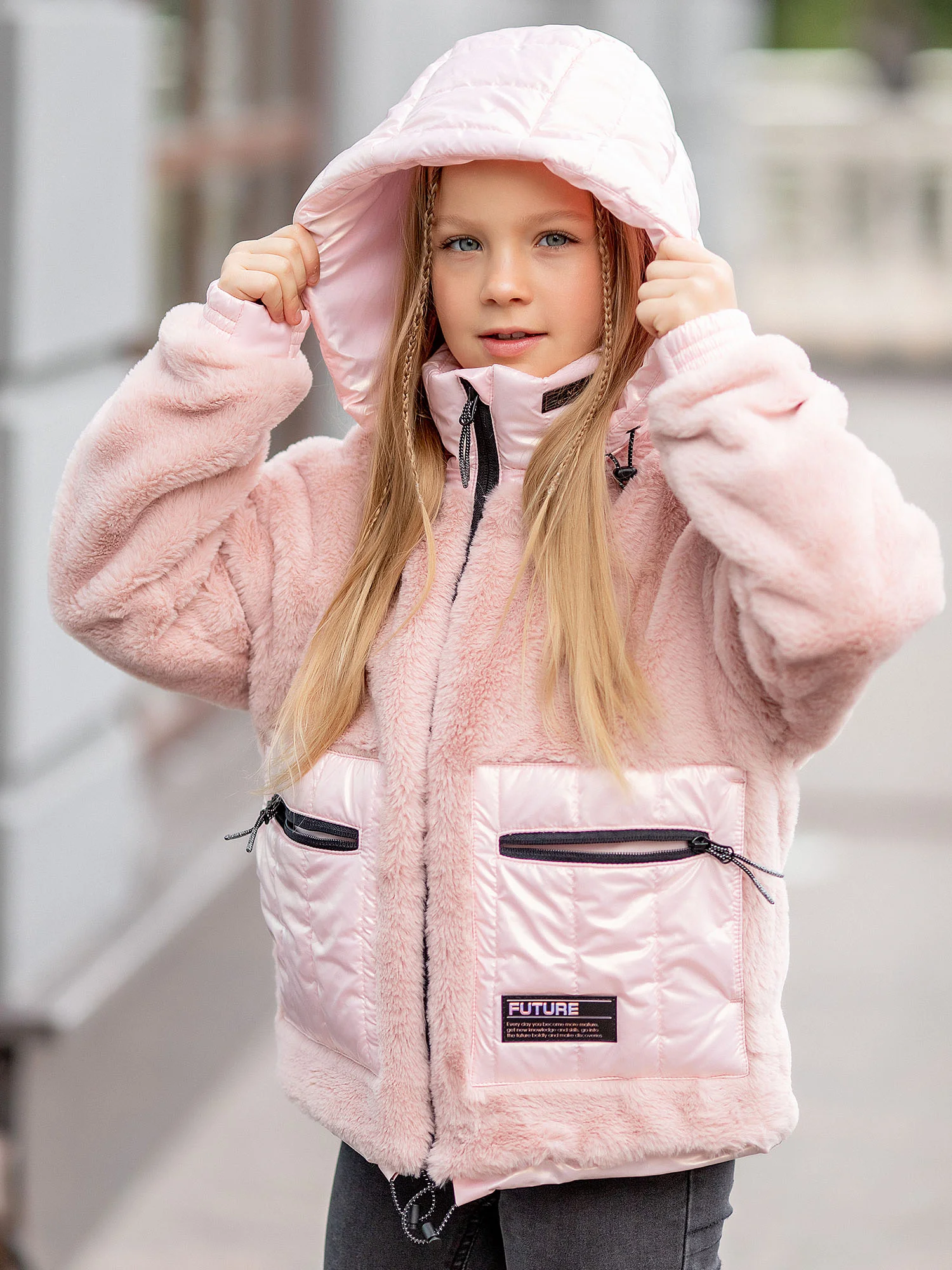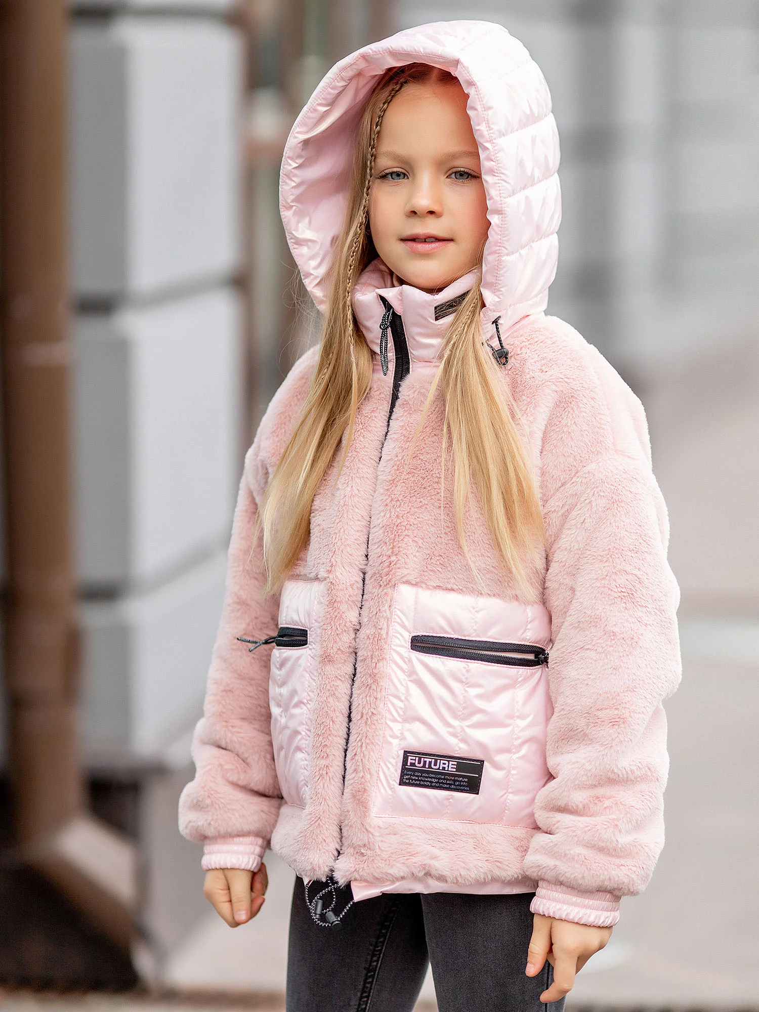 Куртка меховая для девочки Веста розовая без утеплителя. Куртка выполнена из плюшевого искусственного меха с мягким ворсом. Прямой крой, капюшон, застёжка на молнию, два кармана.