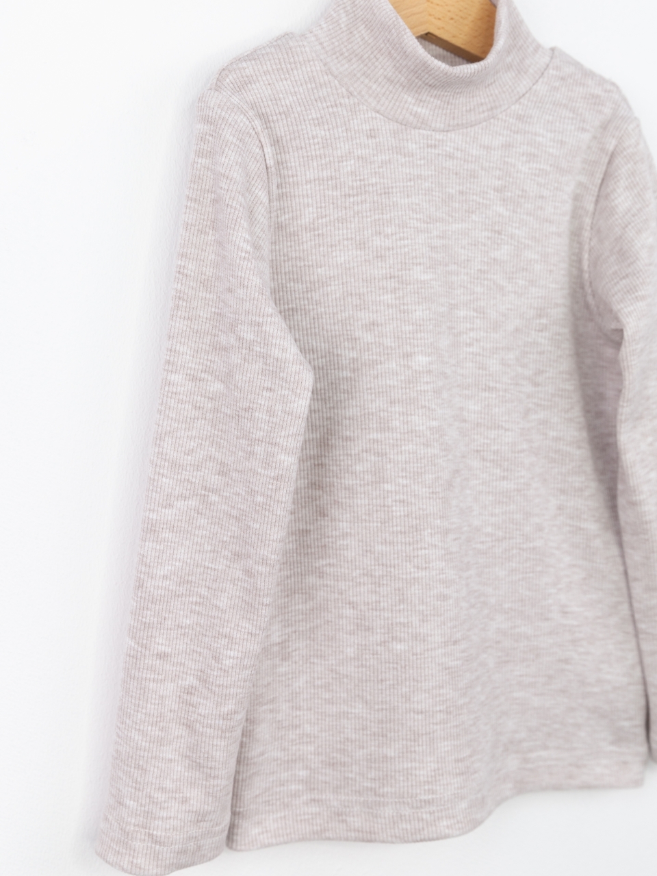 Лонгслив с высоким воротом из кашкорсе (95% хлопок, 5% эластан).