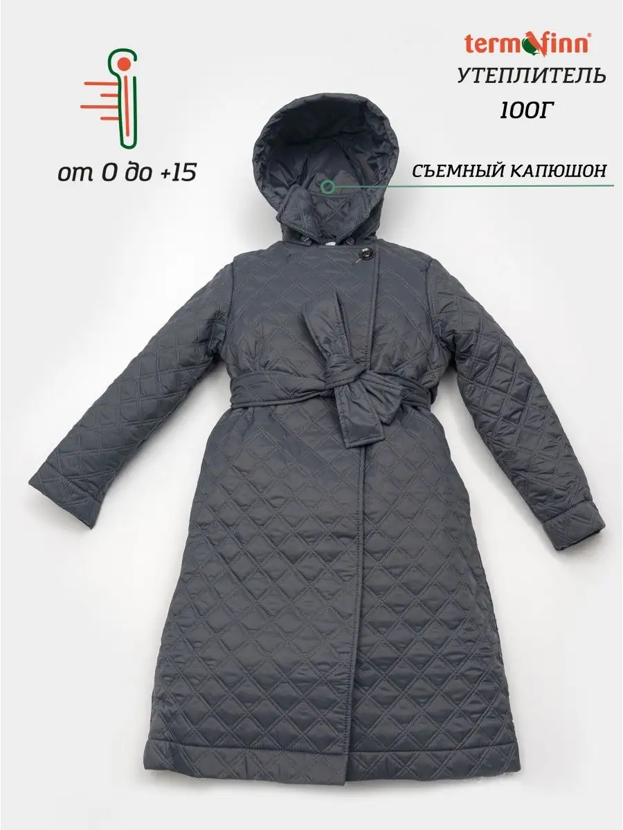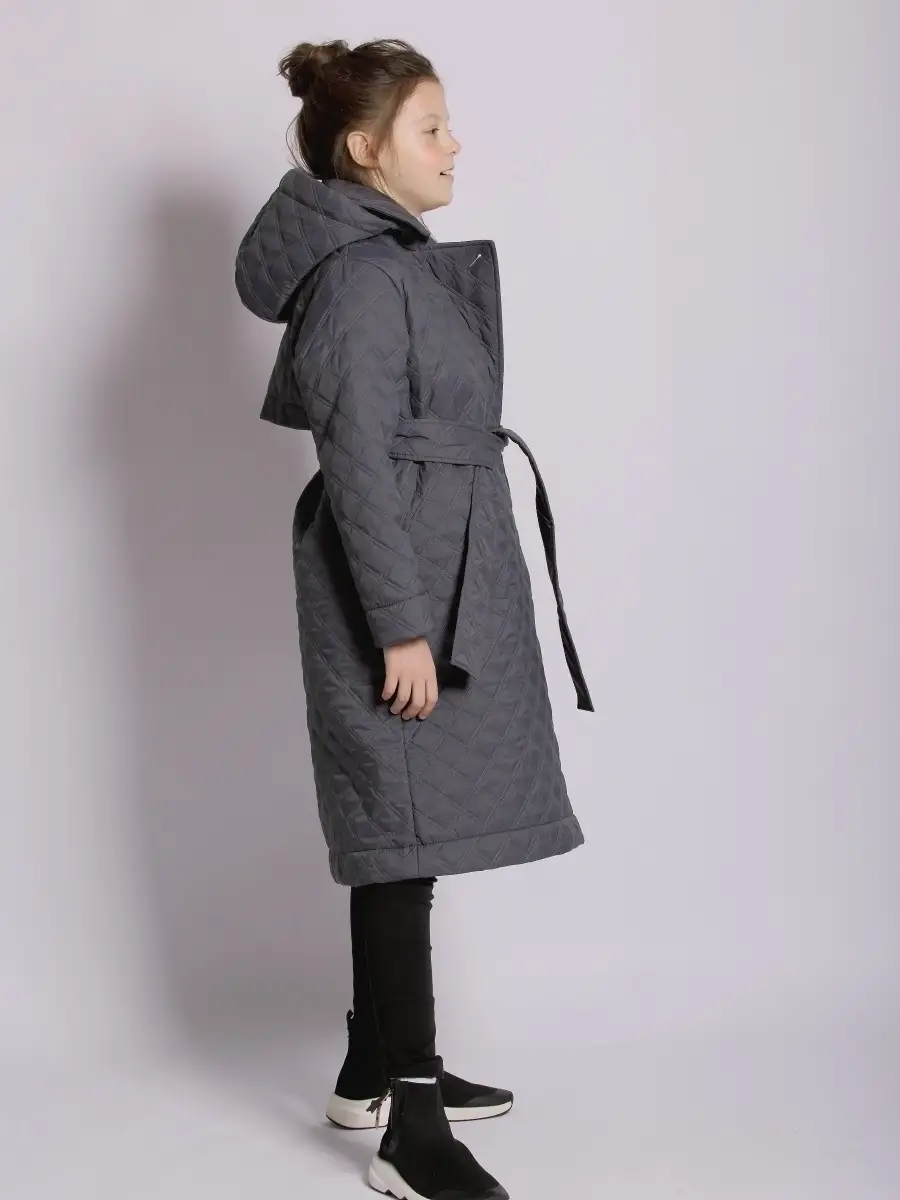 Стильное стеганое удлиненное пальто с четкими линиями кроя и отложным воротником, который можно зафиксировать на пуговицы. Пальто станет незаменимой вещью в гардеробе девочки, девушки, женщины. Низ рукавов с возможностью отворота. В комплекте пояс. Плюс данного пальто это - потайная застежка на молнии, для лучшей фиксации изделия. Съемный капюшон. Потайные карманы в боковых швах изделия. Утеплитель TermoFinn 100 гр. Рекомендуемый температурный режим от 0/+5 С до + 15 С (необходимо учитывать индивидуальные особенности ребенка, нижние слои одежды и климатические условия).