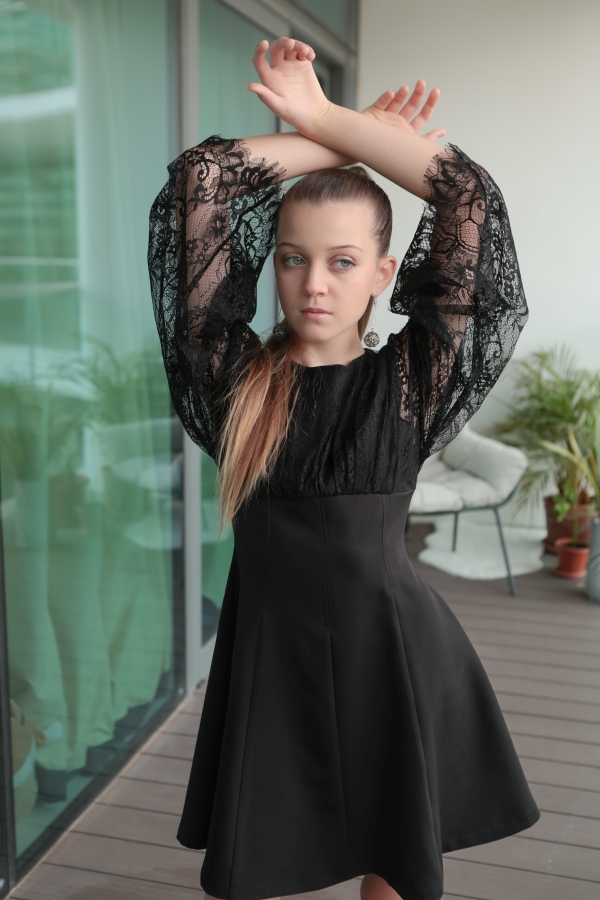 Нарядное платье для девочки подростка приталенного силуэта. Изящная модель с корсетной утяжкой по спинке. Верх изделия и рукава выполнены из французского кордового кружева. Трендовая модель для подростков и взрослых. Для подбора размера, пожалуйста, напишите нам, и мы подберем размер он-лайн.