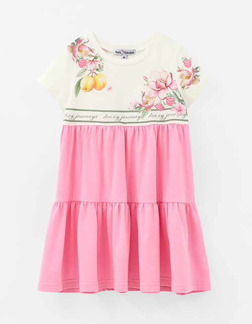 Платье А-силуэта из мягкого хлопкового трикотажа в ярком розовом оттенке. Каскадная юбка создаёт лёгкое, воздушное движение. Авторский цифровой принт и аккуратные стразы добавляют яркий акцент. Мягкая рибана по горловине обеспечивает комфорт. Ткань изделия: трикотажное полотно кулирная гладь