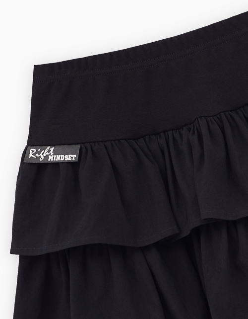 Стильная чёрная юбка. Модель комфортного трапециевидного силуэта. Изделие со средней посадкой, на мягком эластичном поясе. Юбка из поплина с эффектом "жатости", что придаёт оригинальный внешний вид и не требует глажки. Лаконичный авторский декор. Ткань изделия: поплин