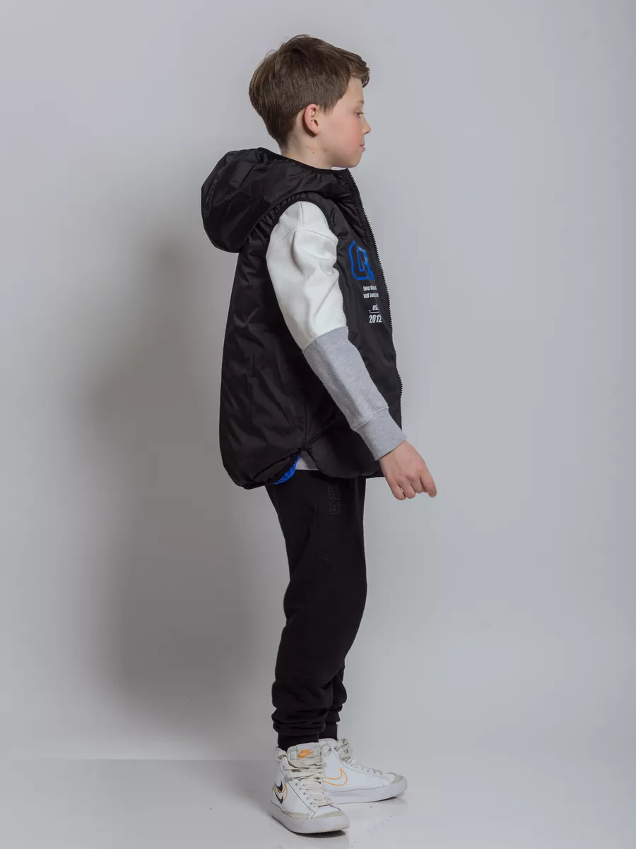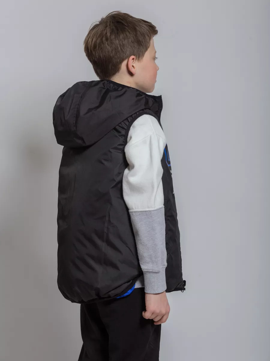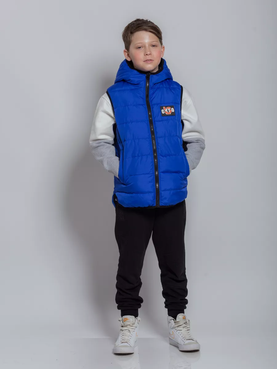 Жилетка весенняя - унисекс. Подойдет как для мальчика, так и для девочки. Благодаря широкому размерному ряду можно носить малышу и подростку. В безрукавке осенней имеется две функциональные стороны с двумя полноценными карманами с каждой стороны изделия, для хранения мелочей или обогрева рук. Удобная реверсная молния с перекидным пуллером. Втачной капюшон. Низ оформлен по рубашечному крою с неглубокими разрезами по краям. Окантовка фирменной эластичной резинкой капюшона, проймы и низ изделия. Подкладка - это вторая сторона жилета, 100% полиэстер, для легкого одевания на детские верхние вещи. Прямой и свободный крой и разнообразная цветовая палитра позволяет ее сочетать с любой детской одеждой, сохраняя при этом комфорт и свободу движения. Безрукавка демисезонная будет удобна как поверх футболки, так и теплой толстовки. Дутый жилет спортивный из болоньевой ткани на осень для малыша незаменим в ветреную погоду. Плащевая ткань защищает от ветра и влаги в период межсезонья.